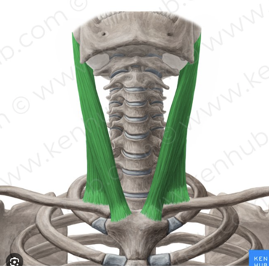 - Bilateral: flexion cervikalt; accessorisk inandning