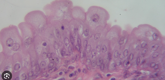 • Flerskiktat med paraplyceller apikalt; varierar i tjocklek beroende på uttänjning.