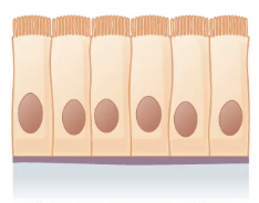 Kännetecken Enskiktat; höga celler med cilier apikalt. Vanliga lokaler Tuba uterina (äggledare), små bronkioler. Funktion Transport av innehåll (ägg, slem/partiklar) via cilier. Relaterat flerradigt cilierat (respirationsvägsepitel) Kapitel 3 – Epitel