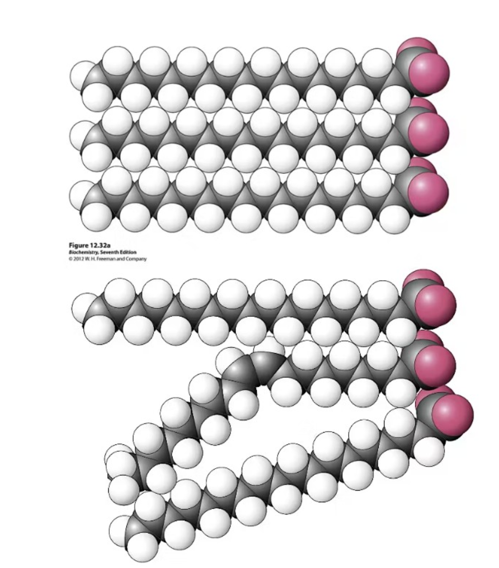 omättade lägre smältpunkt, mindre krafter mellan molekylerna