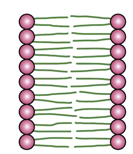 Kolesterol i båda leaflet hydrofobt mot hydrofobt och hydrofilt mot hydrofilt. Glykolipider i outer leaflets
