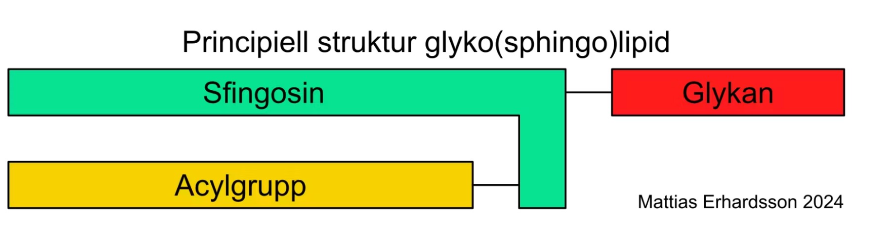 • sfingosin + acylgrupp. Har en sfingosin istället för glycerol + acylgrupp