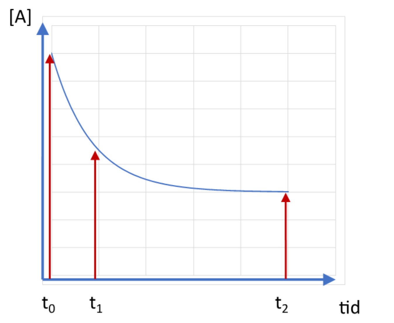 Diagrammet ovan visar koncentrationen av ämnet A som funktion av tiden i en reaktion där A